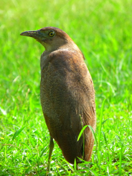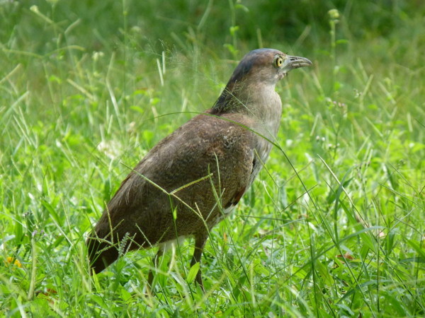 夜鷺不知是否忘了回家的路,形影孤單的獨自在公園裡的草地漫步,