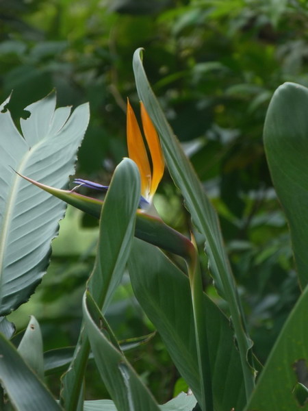 金黃色的天堂鳥躲在樹叢中兀自綻放;