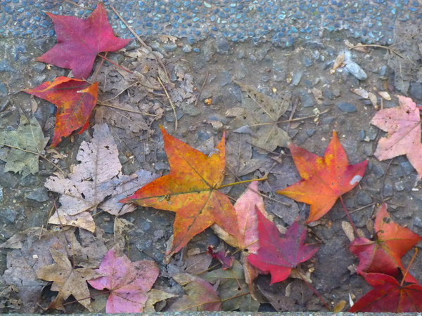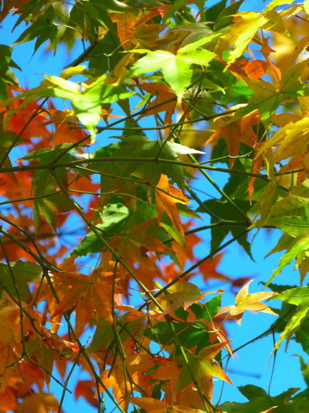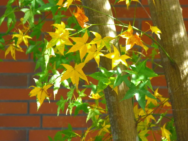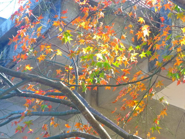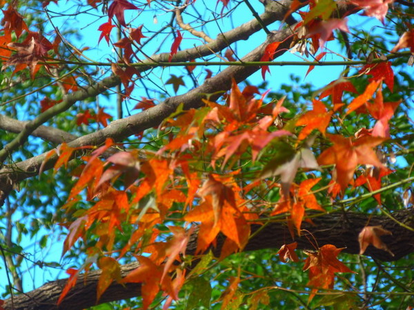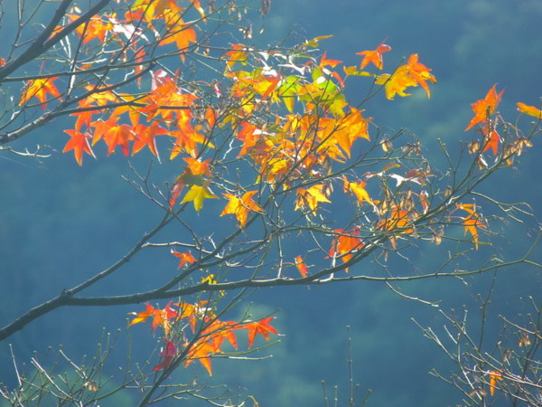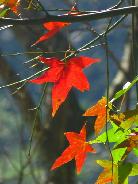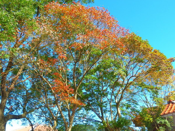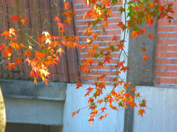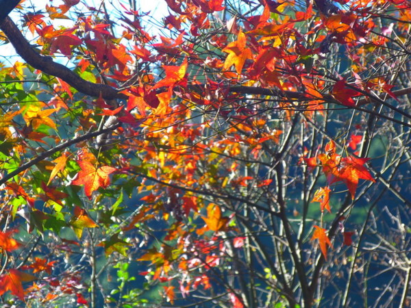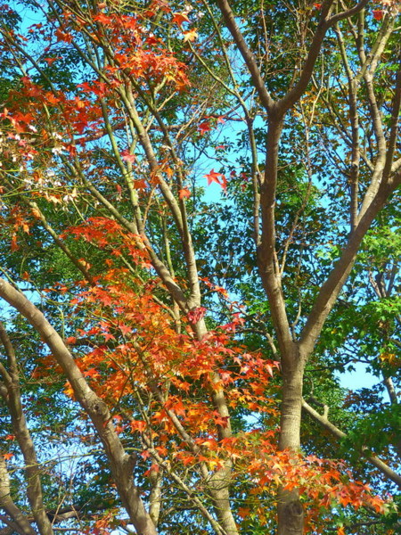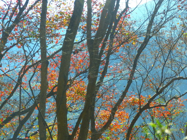 尚可見到 有幾株楓樹身上依舊披著火紅一片