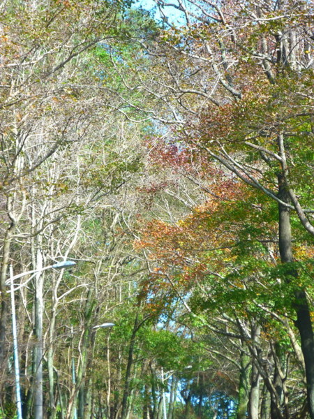 我們到了楓樹林 便隨意將車停在路旁 下車採步行遊林區