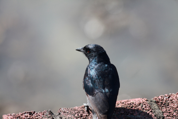 特徵:雌雄鳥同體色,皆為黑色而有光澤,嘴短且前端下鉤,全身有