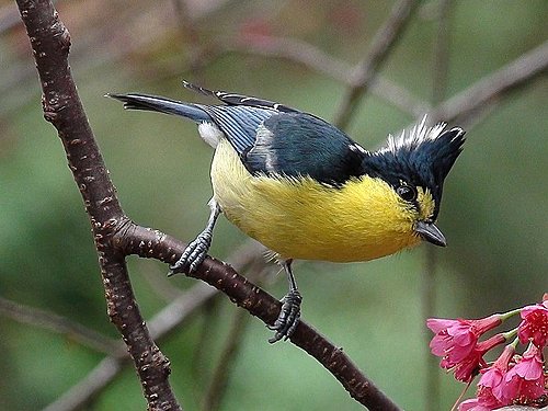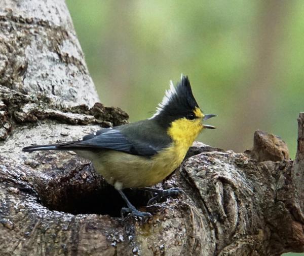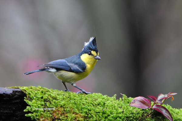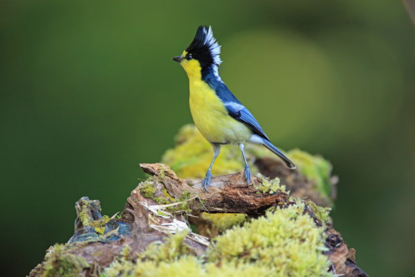 牠有青背山雀般黃綠的羽色,但卻多了一頂黑色羽冠。在台灣的四