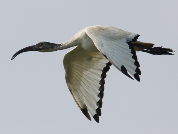 聖䴉成鳥長68厘米,身體全白,後羽黑色。頭部及頸部都是禿及黑色
