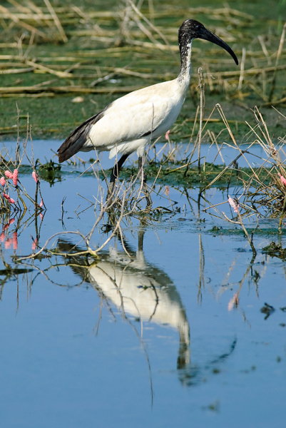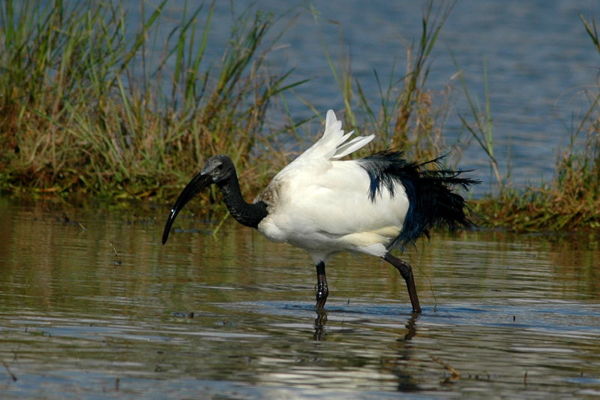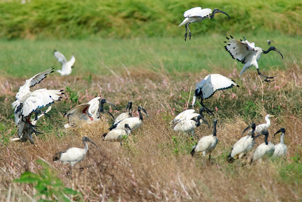 習性:埃及聖䴉在樹上築巢,會與其他水鳥(如鷺科)一同生活。牠們