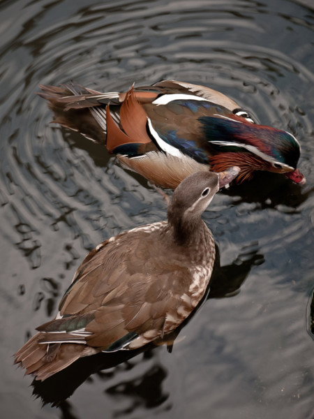 ,古人謂之「思羽」。腳橙黃色。雌鳥(鴦)嘴喙暗褐色,基部有