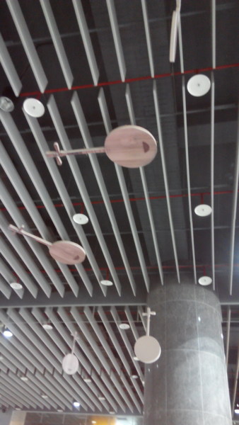 體月台。新的車站還有一個尚稱寬敞的大廳,以傳統樂器-月琴做空間裝飾,試圖喚醒