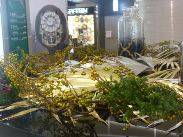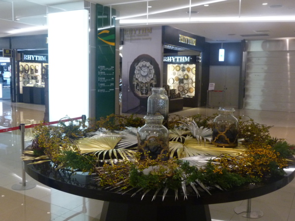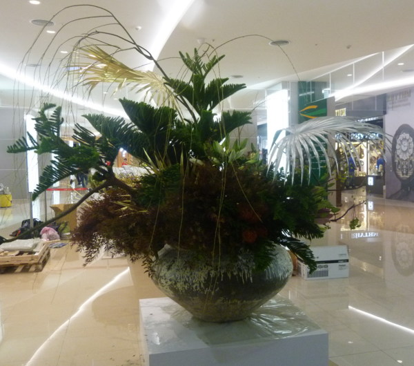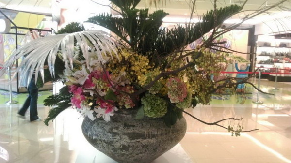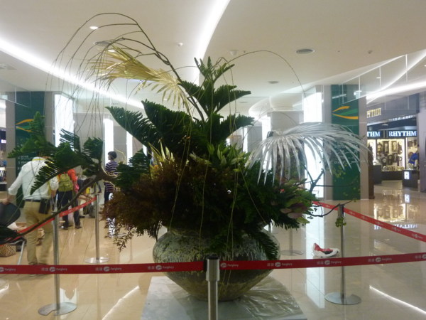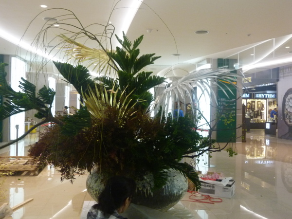 遠雄購物中心一樓大廳,為即將開幕的購物中心插作迎賓花台。