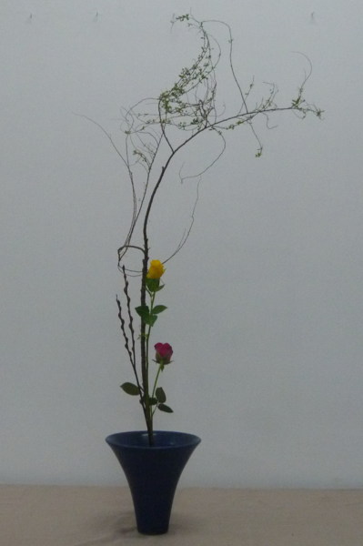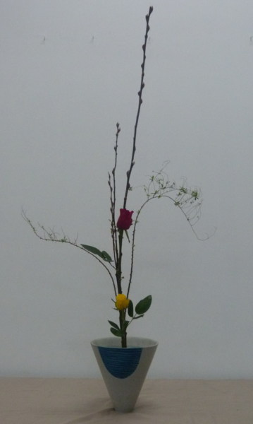 花材:貓柳5支 雪柳2/3把 黃紅玫瑰各1支