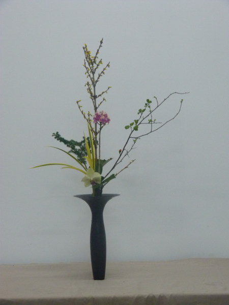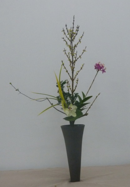 直立的花材(上木下草)為中心的上段,下段草花表現以左長