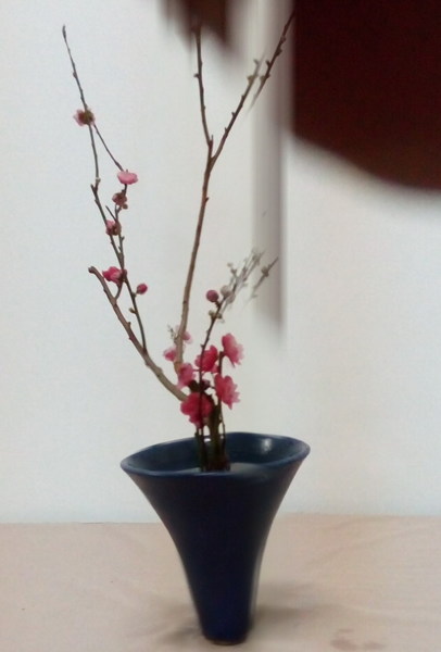 花材:杏花2把 鐵砲百合2支 青龍葉3組