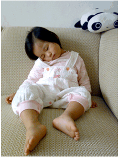 為了方便餵母奶,小穎出生後,大部分都是和我們一起睡。曾試著讓她自己睡嬰兒床,卻很少成功,用了很多種方法,她都會很敏感地醒來,於是她和我們一起睡的機會愈來愈多。