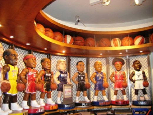 NBA 籃球專賣店: 有衣服,公仔,還有三尺高的籃球玩偶。