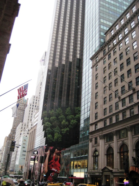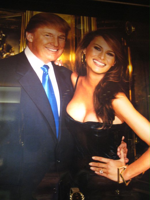 川普先生一直是妹妹心目中的偶像,尤其是看過”誰是接班人”之後,更是對他崇拜不已。這次願意來紐約大學唸書,有一部份的原因也是因為川普之故。所以來到第五大道,當然是一定要去拜訪川普大樓囉! 大樓內陳列了川普夫婦的照片,男俊俏女美艷,完全是有錢人家的生活型態,大樓內有一面水牆,水流川流不息的從上流下,也是一個特色。二樓一家星巴克,拜川普大樓的名氣,聽說一向都是客滿的,今天到此一看,果然座無虛席。雖然川普是一名成功的商人,但畢竟他的作風,仍有許多爭議。