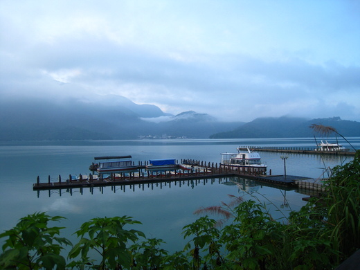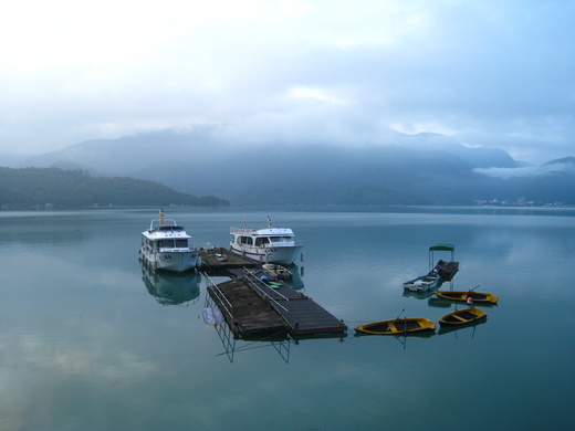 周日一早,不到五點,我就起床,打算出門逛逛湖濱步道。出門後,就往朝霧與水社碼頭方向,慢慢沿著公路走,天氣很涼快,到了朝霧碼頭時,一群喜愛攝影的人,各各都架著腳架,要等日出。我則是傻瓜相機,隨手拍拍。不過這湖真美,怎麼拍都好看。再往前走,就到了水社碼頭,好多的遊艇,與臨湖的大飯店,環湖步道挺不錯,接著就到了梅荷園,與涵碧步道,可惜正在修護中,無法前往。由於還想在7點半之前,回到飯店與大家一起吃早餐所以就轉頭往回程走,一路上不少的人,騎單車遊湖,上坡的時候,看起來比我走路還辛苦,我想我的11路公車,性能還不錯。