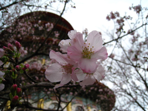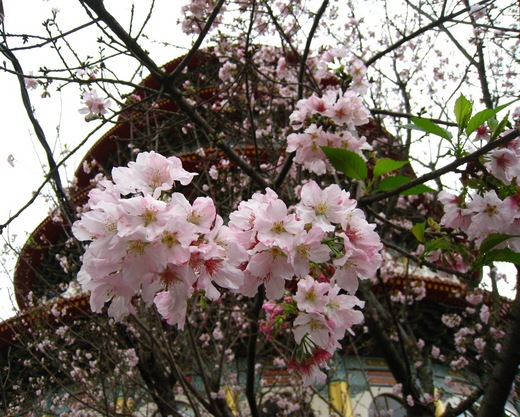天元宮的櫻花,基本上是圍繞著主要的建築物,櫻花加上廟宇的背景,的確是攝影的好題材,櫻花樹下,一堆腳架,很多人都是拿著單眼相機與長鏡頭,努力的尋找漂亮的攝影角度。趁著春雨還沒有將花朵打壞,讓愛花人好好的欣賞一下吧!