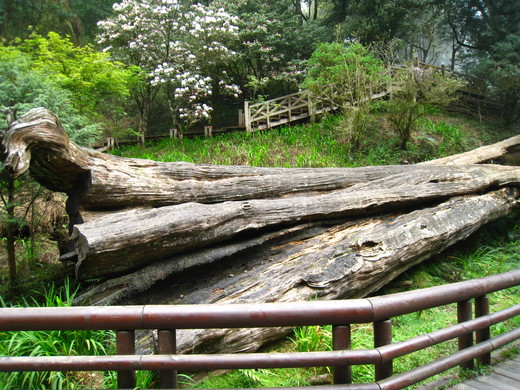 阿里山神木,雖已倒下,仍讓人有不少的懷念,紅色小火車,還是遊客的最愛。走在森林中,霧色茫茫,有一種迷幻的感覺。沿著鐵軌往前看,一片茫然,盡量讓自己,多吸幾口芬多精,讓這森林的味道,藏在我心。