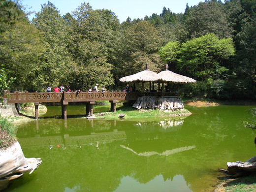 沿著沼平公園,向北邊的森林步道慢慢走,不用多久的時間,就會看到一潭湖水。 姐妹潭是阿里山著名的景點,共有一大一小的水潭,坐落在高山森林之間。我不清楚,水源從何處來,看不到任何的河流,或許就是靠天上的雨水吧! 姐潭中間還有亭子,由於潭水十分的平滑,像是一片鏡子,反射著週遭的美景,看起來挺不錯的。