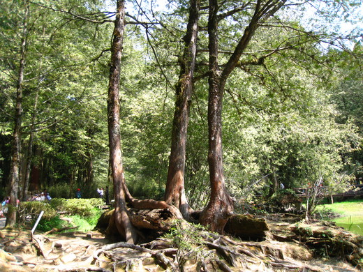 姐妹潭附近,還有三兄弟樹,與四姐妹樹,都是有三四株紅檜大樹,長在一起,好像兄弟姐妹一般。高山上,原本一片寧靜,要不是這麼多的遊客,弄得人聲鼎沸的,各種鄉音,此起彼落,更證明了阿里山的魅力,無遠弗界。