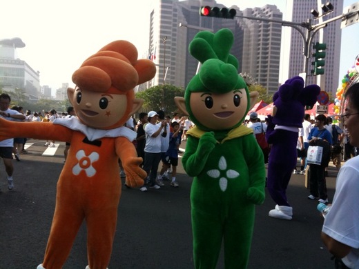 跑完之後,還看到花博會的吉祥物人偶,替他們拍了張照片,先睹為快!