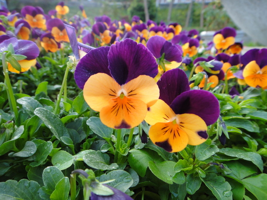 路上風景秀麗,還有婦人在賣自家種的青菜, 騎著騎著,居然真的讓我騎到碧潭了! 那裡種了一種很特別的小花,一朵花裡面有紫色與黃色兩種花瓣,好特別喔!