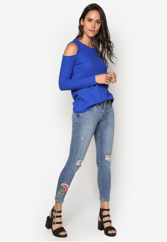 【私心大推】ZALORAAlannahesprit retail 刺繡窄管刷破牛仔褲, 服飾, 服飾