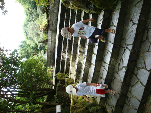 不到九點,從家裡出發,到了山上才發現原來許多阿公阿媽都已經在山上健走了.有些早已經坐在亭子裡喝茶聊天,還有一桌,啤酒都喝完好幾罐了呀~~~寶貝們完全不畏炎炎夏陽,又走又跑又跳的,我們的腳程還有點太慢哩...