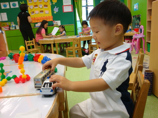 | 迎回教室,弟弟這麼邊哭邊玩(發現他的最愛-- |