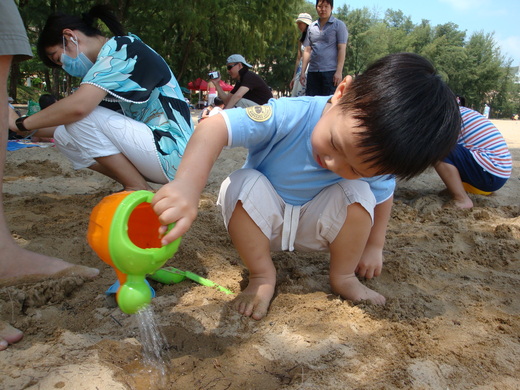 | 找個陰涼處,孩子們就自顧自的玩起沙子.把拔一開始 |