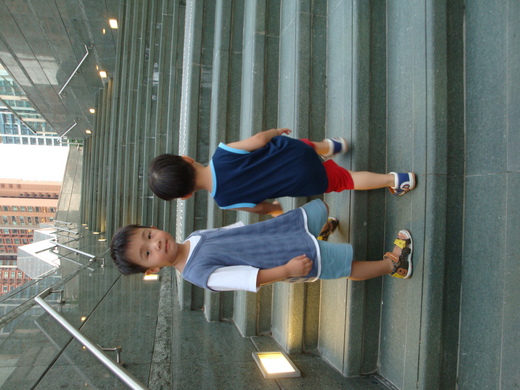 | 弟弟早就脫了鞋子赤腳跑來跑去,我提醒弟弟要撿 |