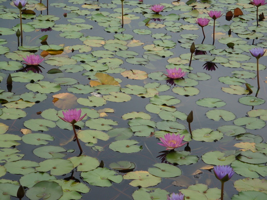 我們一家四口,照例又帶了切好的水果,水,餅乾,慢慢的在湖邊散步,每次去都要找找看有沒有野生菇,寶貝們喜歡那種尋尋覓覓,然後不知在哪兒會出現一個或一坨圓圓的頭頂,可愛的站在草地裡,有時遇到白色,有時是褐色,只是這次連一個也沒見到。哥哥每每愛停在有標示名字的樹前面,指著牌子問:「這是什麼?」,弟弟也有樣學樣。走到荷花池,我們就挨著池邊坐下來,喝喝水,歇歇腿,哥哥會說,「這是莫內喜歡的水蓮」,弟弟也不甘寂寞,說:「哥哥,哥哥,是水蓮耶~~」,一朵花,匆匆一撇和直盯著她看個三分鐘,感覺真的很不同。