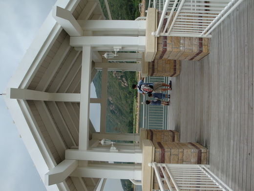 弟弟走到了湖邊的一個亭子,不願意走了,他想在亭子看湖水,磨蹭了好久才願意繼續往前走。我們到了一座小橋上坐下來,喝水吃水果,只是弟弟一不小心把他的水壺掃了一下,水壺就滾滾滾到了橋下,順著水流漂到了湖裡面。。。弟弟愣了愣,眼眶泛淚珠,說:「我的水壺!!。。。媽媽!媽媽!可以幫忙撿嗎??」,爸爸本來要試著下去撿,媽咪制止了這個念頭,因為也危險而且也撿不到了。我們安慰弟弟,水壺到了湖裡面了,跟水壺說byebye,弟弟非常不捨這個水壺,直盯著看,喃喃又哀怨的說:「我的,我的水壺,我的水壺。。。。」,媽咪倒是不好意思給迪欣湖添了一個垃圾。