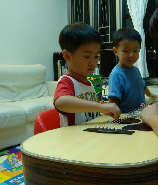 常常,小朋友因為欲求被拒或不能為所欲為而發脾氣,我們在家實驗了不同的做法,現在,教他們如何說出自己的情緒(我很生氣),為什麼原因,往往出現很不錯的效果(當然有時也是沒用)。現在,弟弟生氣時,他會說:「媽媽,我很生氣~」,我們告訴他,生氣的時候,可以去彈琴,於是,他越來越習慣,說完我很生氣之後就要大人扶他,爬上鋼琴椅,叮叮咚咚的用小手緩慢的按出很sad的琴音。