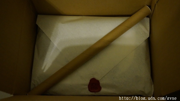 噹噹噹~開箱,製作師非常貼心的把布料的軸心保留給我們,用紙包好的雪花絞浴衣,還很精緻的上了署名的蠟封。