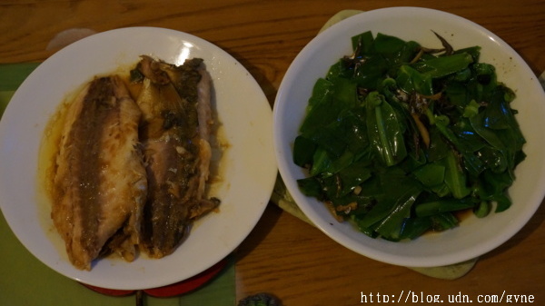 今日晚餐:竹莢魚味噌煮,豆豉小魚炒山蘇。
