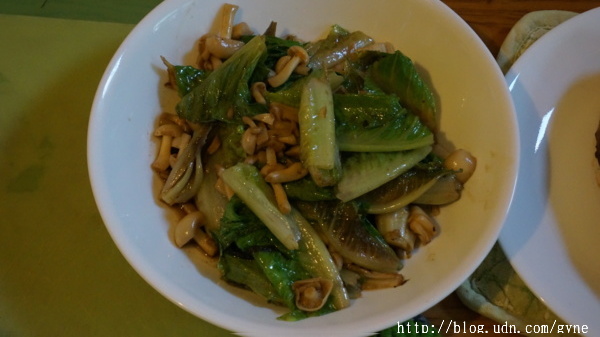 蒜3瓣拍扁切末,雪白菇一包剪碎,蘿美生菜洗淨掐段。