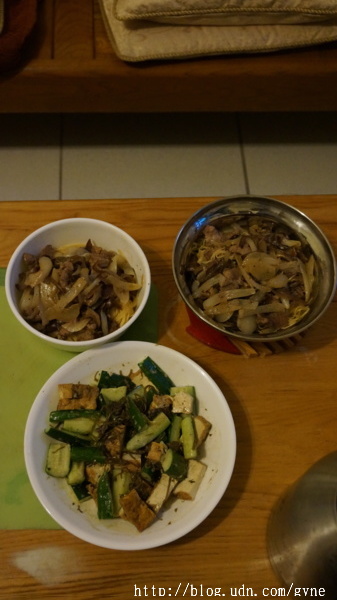 今日晚餐:木須牛肉炒義大利細麵,日式拌菜。