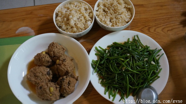 昨天中餐:糙米薏仁飯,蒜炒水蓮菜,蔬菜肉丸子。