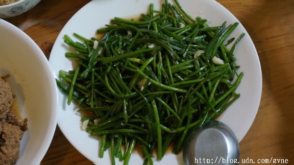 單純把蒜末用玄米油炒香後,加入洗淨剪段的水蓮菜炒勻即