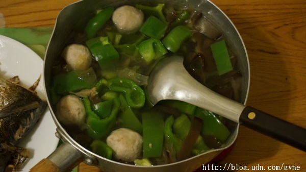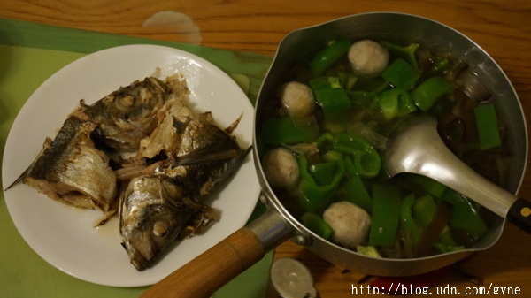 今日晚餐:煎竹莢魚,蔬菜貢丸冬菜湯。