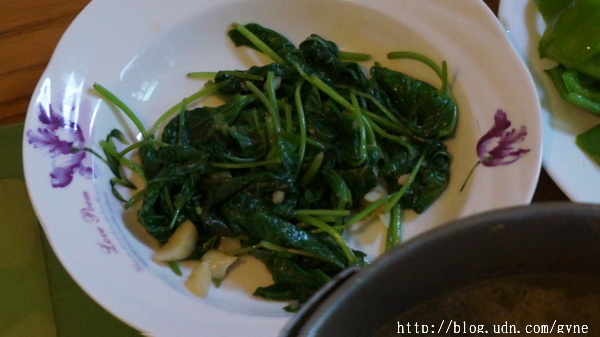 自己種的地瓜葉,剪了一籃炒炒只剩一小盤啦XD,感覺超