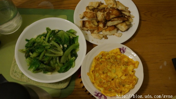 昨日晚餐:麻油薑煎鯛魚片,蒜片清炒大陸妹,蔥蛋。