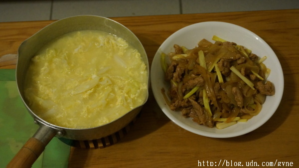10/31的晚餐:雙蔥爆肉絲,高麗菜蛋花湯。