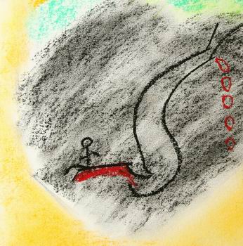 剛開始,我拿著粉蠟筆,只是發洩情緒似的,使勁的亂塗,像隻失去理性的野獸,在圖畫裡亂撞,發出怒吼。我對著圖畫大聲說:「我———很———生———氣。」或者:「我———真———笨。」然後,抽抽噎噎的哭了起來。