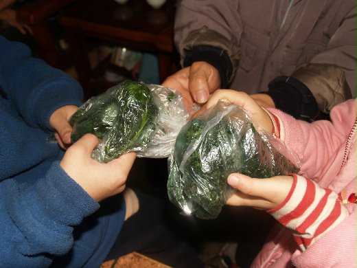 1.首先拔出適量的大菁葉子,放入塑膠袋,加入一點鹽巴,比較容易釋出色素水分。