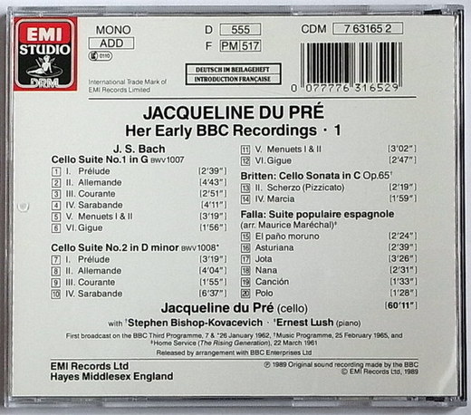 卡薩爾斯13歲時拿到巴哈《無伴奏大提琴組曲》後潛心鑽研,一直到12年後才公開演出這套作品,到了63歲時才為EMI灌錄這套作品全集的商業錄音,此時他已經琢磨這套作品達半個世紀之久。這套錄音史上第一套《無伴奏大提琴組曲》全曲的錄音,讓世人不再以練習曲的觀點看待作品本身,卡薩爾斯以寬裕自由的右手運弓、自然的左手指法,充滿歌唱性地柔化刻板的教條,留給後世對這套作品無限的想像空間。