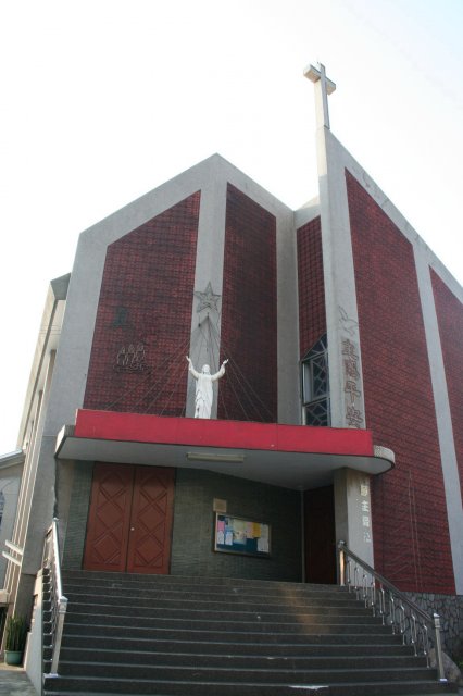 神聖、醒目的十字架,高高矗立在如艦首般的屋頂上,宣告世人:這裡是天主、聖母布施愛的葡萄園,是迷途羔羊的溫暖歸宿。
