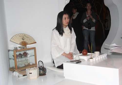 伴隨著渾厚的鐘磬聲,七位身著中國傳統服飾的茶藝師,分坐於七個別具匠心的茶室中,有條不紊地撥茶、煮沸、燙杯、聞香……觀者則在茶藝師的一舉一動中慢慢領悟到一杯茶之外的內涵。