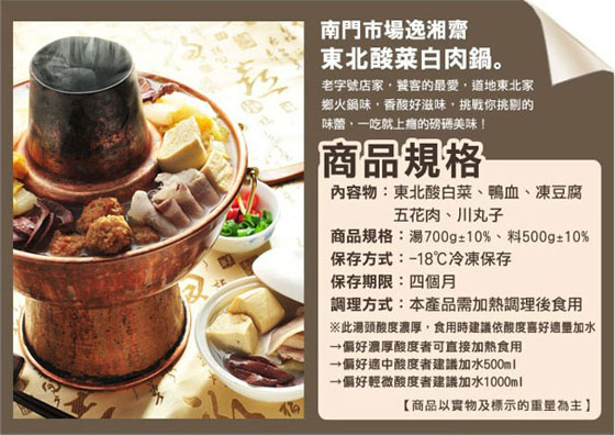 祝您新年大發又幸福! 打破傳統、獨立經典菜餚 【南門市場逸湘齋】讓您自由搭配加菜 ![]() 「壇啟葷香飄四鄰,佛聞棄禪跳牆來」傳說此菜源於清光緒年間,距今有百餘年歷史,是中國閩菜首屈一指、最能考驗師傅功力深厚的傳統菜餚,內藏30多種原料及佐料,味道鮮美迷人,是好吃到連神仙都跳牆的美味! ![]() 能在南門市場成為知名老店,正是這道經典第一名菜-佛跳牆!嚴選30多種食材、佐料,用料考究,烹製程序嚴格,在老師傅長時間的文火烹煮後,將所有食材精華通通滲透至湯頭,濃郁鮮美滋味,卻不油膩,就連神仙都羨慕、高僧都忍不住翻牆吃,一嚐那豐富食材所堆砌出的多層次美味口感,實在太好吃了! ![]() 嚴選上等干貝、大甲芋頭、海參、魚皮、豬腳、蹄筋、豬肚、排骨、大白菜、筍片、冬粉翅、鳥蛋、紹興酒等豐富材料,毫不吝嗇的擺放食材,精心烹煮的的百年美食,熬煮出香氣繚繞的甘甜口感,每一口都吃得到滿滿的料和精華,沒吃過這一甕,別說你吃過真正的佛跳牆,好吃到跳腳! ![]() ![]() 嚴選天然發酵的東北酸白菜,搭配老母雞高湯、金華火腿與獨門配方熬煮數十小時,完美呈現風味道地的北方天然滋味,再加上肥瘦比例均勻的豬五花肉、口感絕佳的川丸子、滑溜順口的鴨血與老字號凍豆腐,在冷冷的寒冬中,冒著騰騰的熱氣,更顯誘人! ![]() ![]() 封肉的「封」字是指烹煮過程不掀鍋蓋,密封食物於容器內,直到爛熟。封的發音有豐富、豐盛、敕封寓意,象徵封官高陞;封肉的特色是回熱不變味,油亮細緻的五花肉才上桌就散發噴香氣息,熬煮到入味軟嫩,剔透油脂入口即化,與瘦肉搭配出絕美的滋味,滑順不乾柴不膩口,醬香誘人,大塊吃肉、痛快豪邁。 ![]() 年菜必備的四大海味中的鮑魚和海參激蹦出美妙火花!海參的咕溜嫩滑感,味道極鮮美,彈牙有勁的口感在口中越嚼越香,加入香菇、時蔬一同燉燴,養生健康又下飯! ![]() 年夜飯中,最缺乏的就屬青菜了,這道青椒鑲肉輕輕鬆鬆地同時吃到肉和青菜,肉餡能平衡青椒的獨特氣味,讓討厭青椒的小朋友也能大口咬,為大魚大肉的年節時分帶來一股清新爽口的感受! ![]() 上海咕咾肉 非常講究火侯的上海菜,其濃油赤醬,肉質軟嫩,鹹甜口感,盡現老上海風情,香濃美味值得您品嚐。 ![]() ![]() ![]() ![]() ![]() ![]() ![]() ![]() ![]() ![]() 商品名稱:【南門市場逸湘齋】暢銷功夫年菜 菜色規格: 東坡大封400g/份 鮮菇百果燴鮑參300g/份 吉慶有餘豆瓣鯉400g/份 福滿飄香佛跳牆1000g/份 青椒鑲肉400g/份 商品名稱:【南門市場逸湘齋】積福迎珍迎富貴年菜組 內含:五更腸旺/蒼蠅頭/豆瓣鯉魚/青椒鑲肉/佛跳牆/金華沙鍋雞湯/冰糖蓮藕 ※因包裝過程繁複,實品規格可能會有些許誤差。 ※爲保持產品最佳風味,開封後請盡速食用完畢。 |