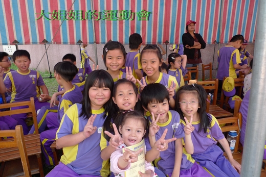 在活動的進行中,雅雅不斷的跟隨在哥哥姐姐旁,賣力的加油。連最後的頒獎典禮,不畏艷陽高照著,聽著指令,一路陪伴到最後!(媽咪都已經躲在樹底下)