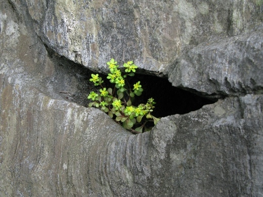石塊是堅硬的,想像這棵小小的植物,每一分的掙扎,每一寸向陽光的挪進,是如何以全身的酸求換得!